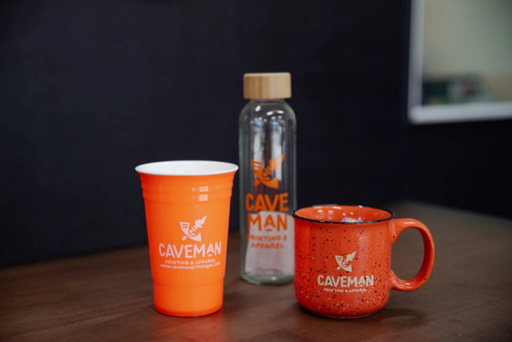 Mugs, cups, pens, water bottles, notebooks, decals, and practical giveaways that reinforce your brand without feeling cheap or disposable.